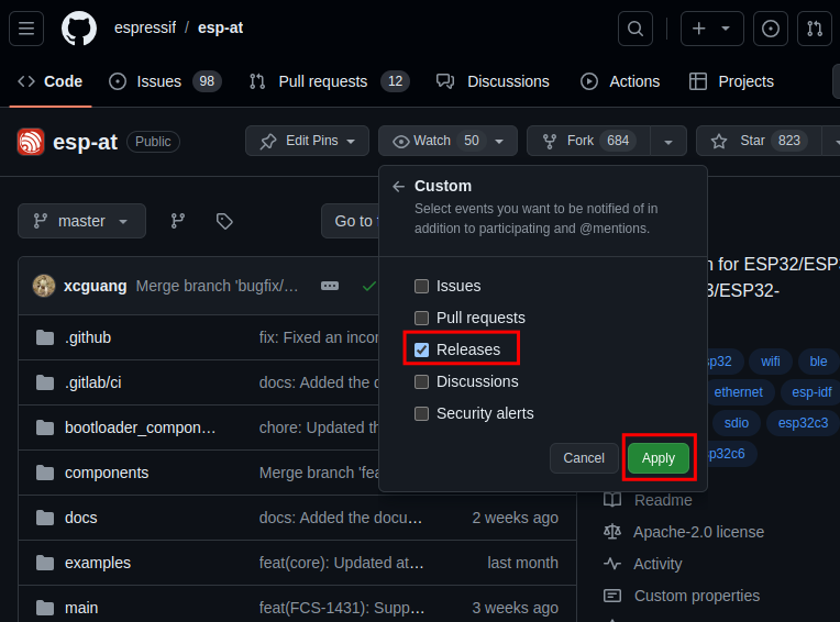 In general, the AT firmware to be released will undergo multiple rounds of testing on the release branch until there are no major issues. Then, the AT firmware will be released, and the release branch will be synchronized to GitHub.