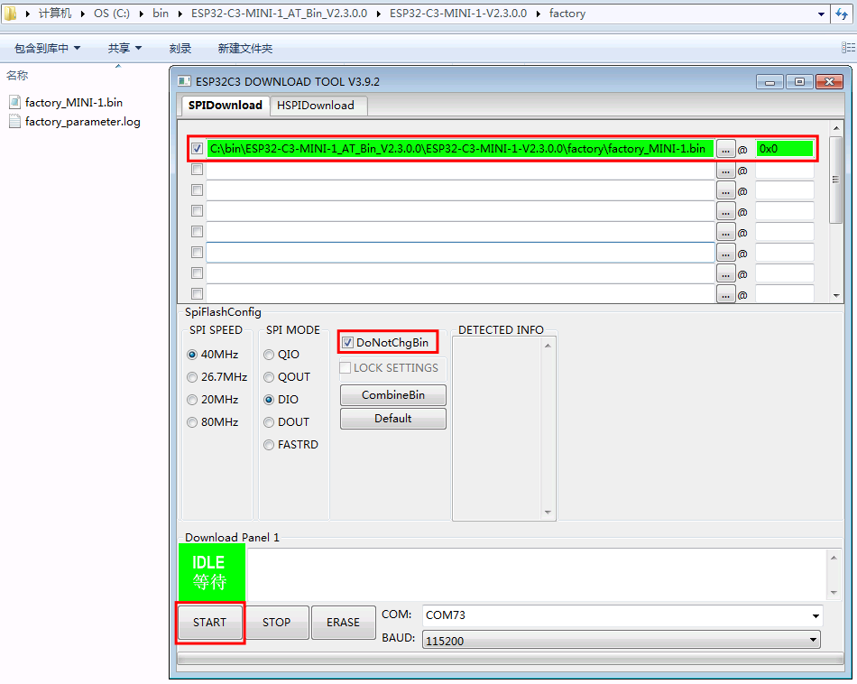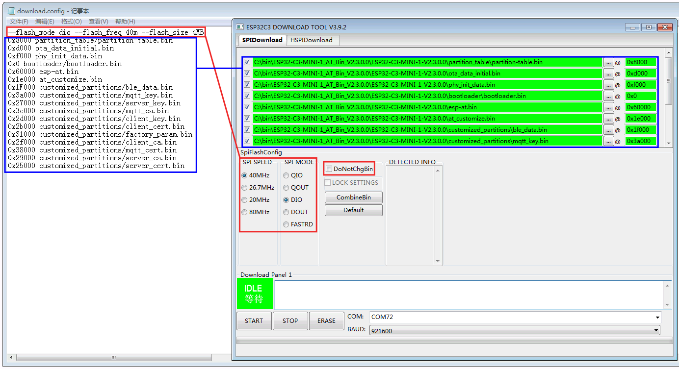 download.config替换成该文件里的参数列表。以下是将固件烧录至 ESP32-C3-MINI-1 模组输入的命令:
