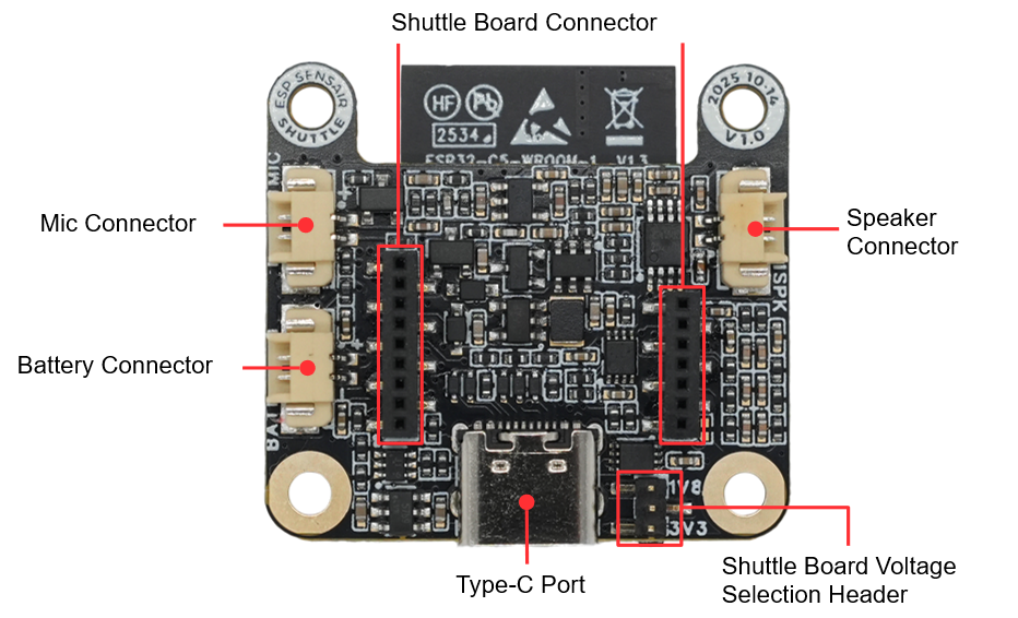 The main components and connection methods of ESP-SensairShuttle are shown in the figure below.