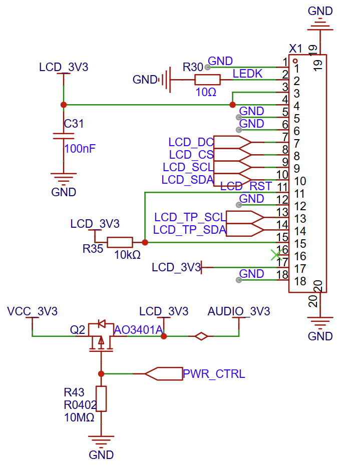 X1 接口为正式使用的 LCD 屏幕接口,该开发板使用的屏幕型号为 ST7789P3,