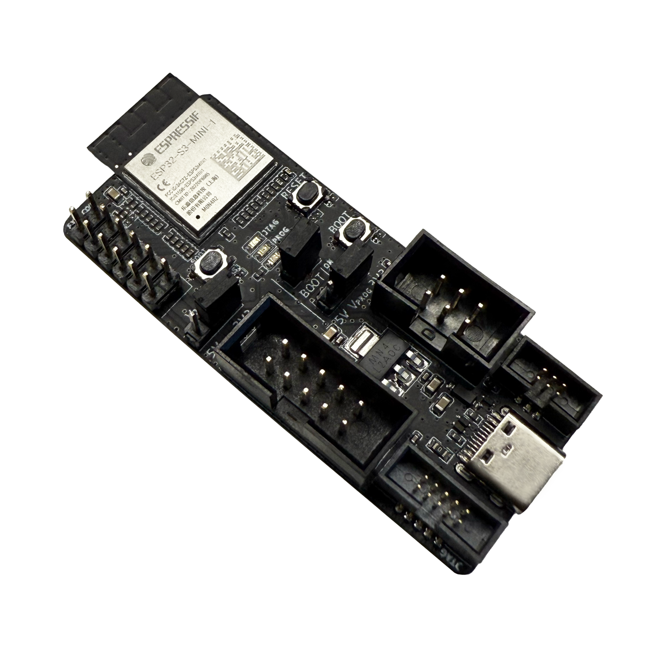 ESP-Prog-2 是乐鑫推出的一款开发调试工具,具有固件自动下载、串口通信、JTAG 在线调试等功能。其中,固件自动下载和串口通信功能适用于 ESP8266、ESP32、ESP32-S2、ESP32-S3 和 ESP32-C3;JTAG 在线调试功能适用于 ESP32、ESP32-S2、ESP32-S3 和 ESP32-C3。