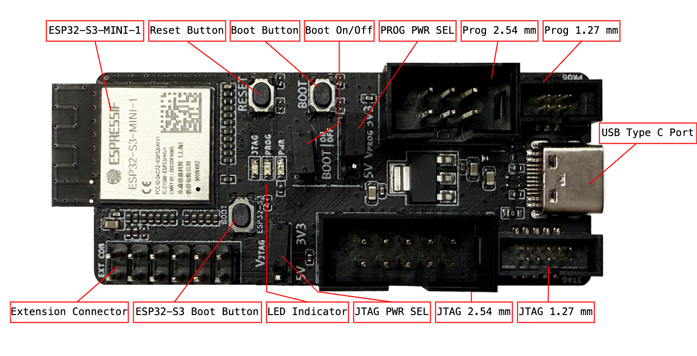ESP-Prog-2 的主要组件和连接方式如下图所示。