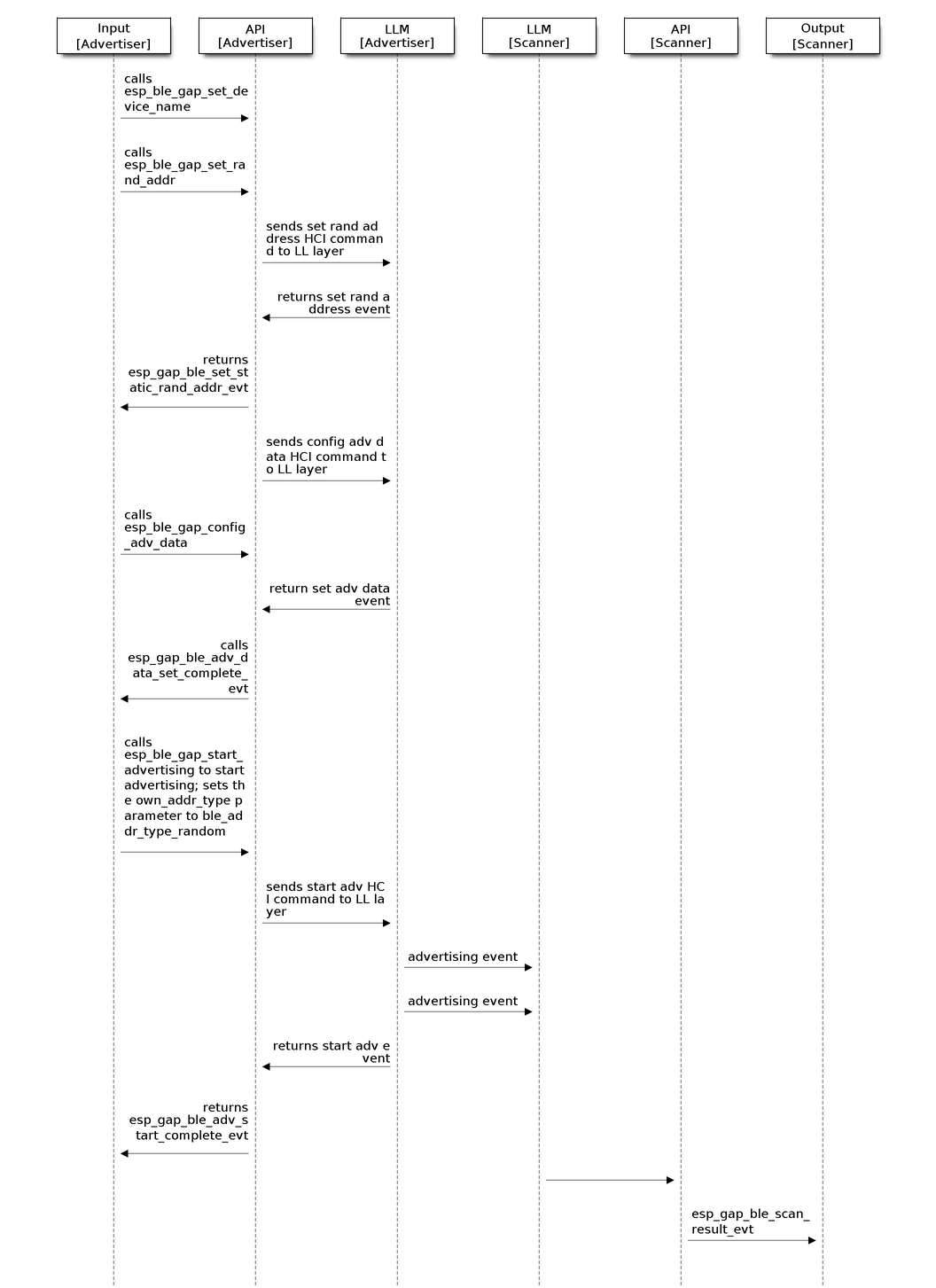 Finally, we call the ble_gap_adv_set_fields API to finalize the setup of the advertising data structures in the advertising packet.