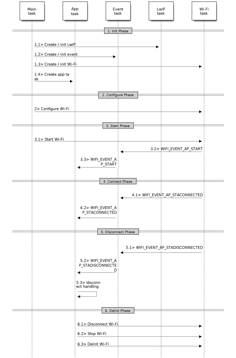 Generally, it is easy to write code in “sunny-day” scenarios, such as WIFI_EVENT_STA_START and WIFI_EVENT_STA_CONNECTED. The hard part is to write routines in “rainy-day” scenarios, such as WIFI_EVENT_STA_DISCONNECTED. Good handling of “rainy-day” scenarios is fundamental to robust Wi-Fi applications. Refer to ESP32-S2 Wi-Fi Event Description, ESP32-S2 Wi-Fi station General Scenario, and ESP32-S2 Wi-Fi AP General Scenario. See also an overview of event handling in ESP-IDF.