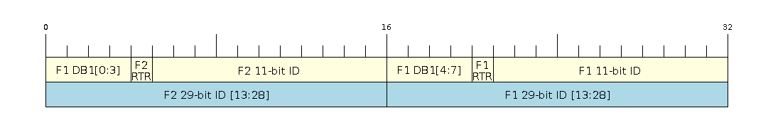 TWAI Messages are split into Data Frames and Remote Frames. Data Frames are used to deliver a data payload to other nodes, whereas a Remote Frame is used to request a Data Frame from other nodes, and other nodes can optionally respond with a Data Frame. Data and Remote Frames have two frame formats known as Extended Frame and Standard Frame which contain a 29-bit ID and an 11-bit ID respectively. A TWAI message consists of the following fields: