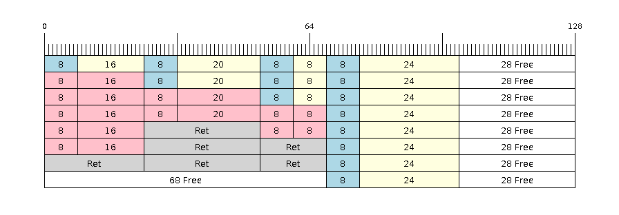The following diagrams illustrate the differences between No-Split and Allow-Split buffers as compared to byte buffers with regard to sending items or data. The diagrams assume that three items of sizes 18, 3, and 27 bytes are sent respectively to a buffer of 128 bytes: