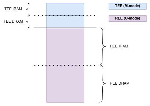 However, the TEE memory is divided into IRAM and DRAM sections, with division enforced by the PMA.