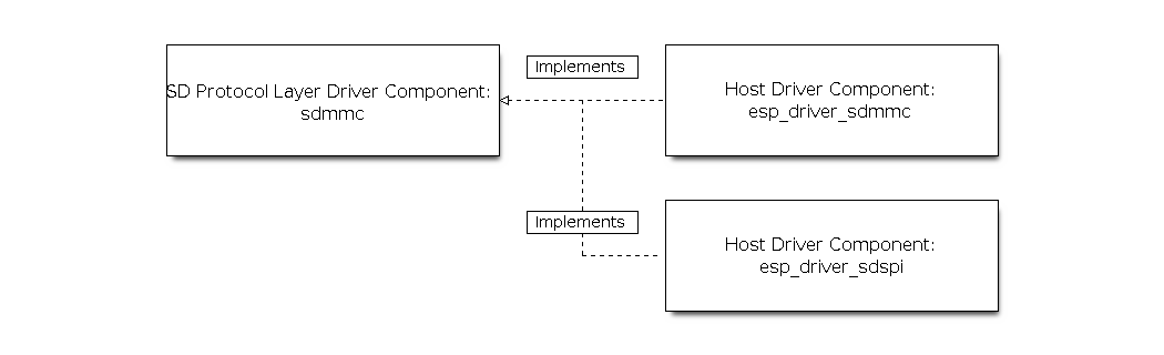 The SD/SDIO/MMC driver supports SD memory, SDIO cards, and eMMC chips. This is a protocol layer driver (sdmmc/include/sdmmc_cmd.h) which can work together with: