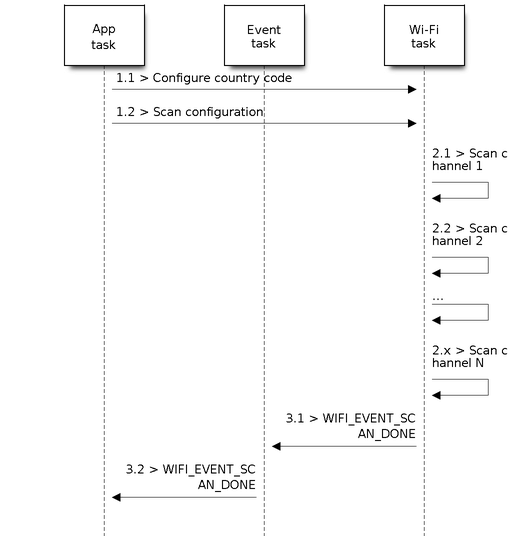 s2.3: The Wi-Fi driver scans the last channel N, where N is determined by the country code which is configured in step 1.1.