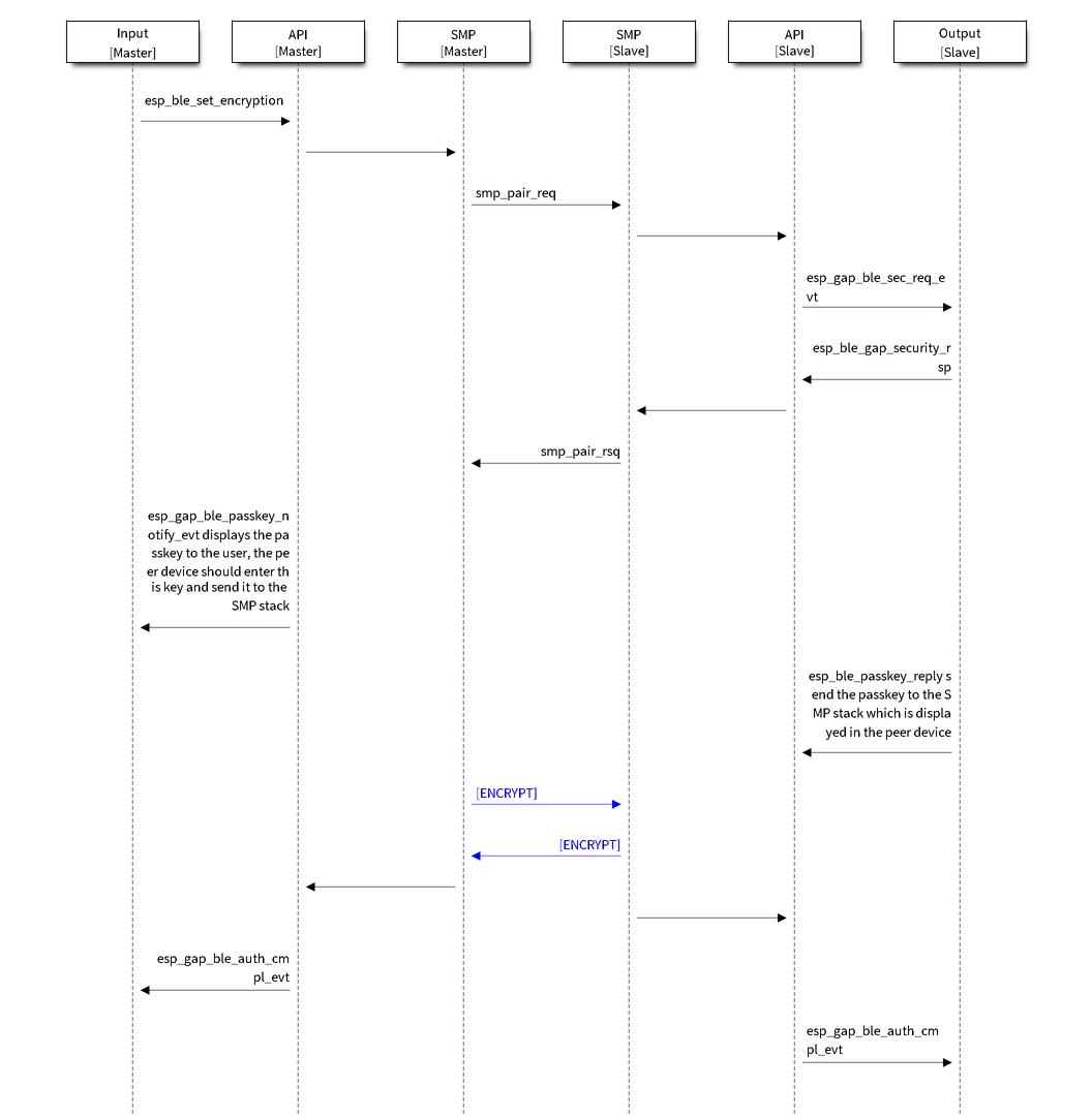 Passkey Entry 模式下,Master 主动发起加密请求的流程图如下 (点击图片放大):