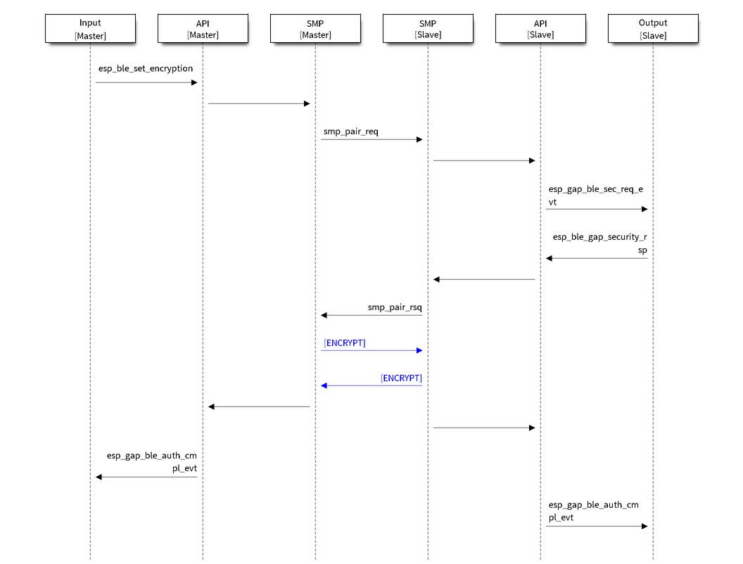 • 初始加密(未绑定): 当两个低功耗蓝牙设备之间未进行过绑定时,加密将在配对过程中进行。是否绑定取决于配对配置。