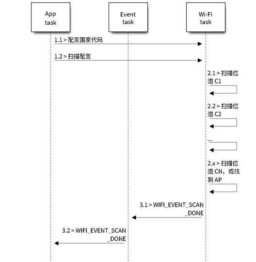 扫描完成事件,由 esp_wifi_scan_start() 函数触发,将在以下情况下产生: