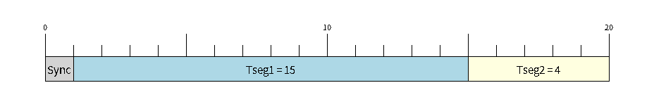 同步跳变宽度 (SJW) 用于确定单个位时间可以为了同步而延长/缩短的最大时间定额数,sjw 可以在 1 到 4 之间。