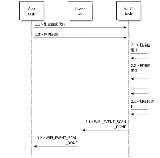 接收到此事件后,事件任务暂不做任何响应。首先,应用程序的事件回调函数需调用 esp_wifi_scan_get_ap_num()
