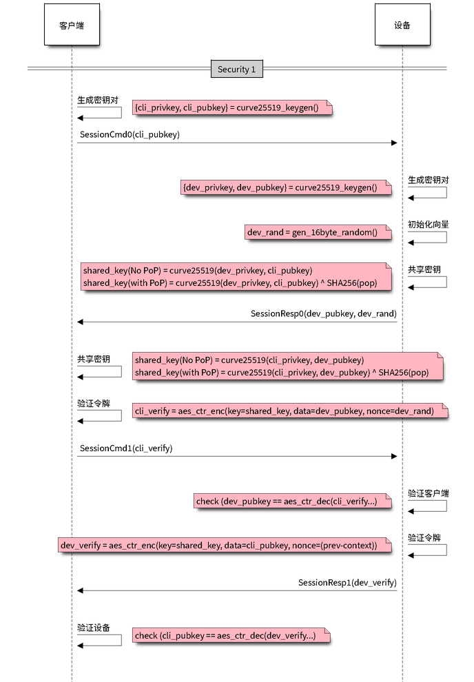 统一配网子系统支持应用层的安全方案( Security 1 方案),即通过 PoP 提供数据保护和身份验证。如果应用程序不使用传输层的安全方案,或者传输层的安全方案不满足使用场景的需求,可以使用该方案。