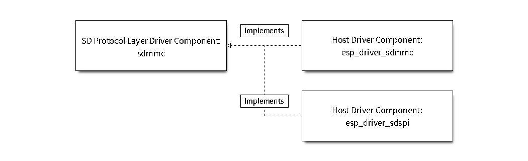 SD/SDIO/MMC 驱动支持 SD 存储器、SDIO 卡和 eMMC 芯片。这是一个协议层驱动 (sdmmc/include/sdmmc_cmd.h),可以与以下驱动配合使用: