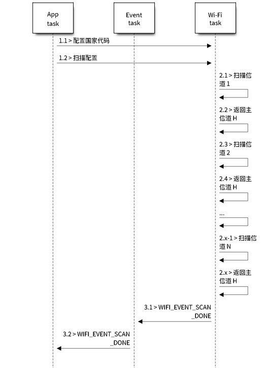 接收到此事件后,事件任务暂不做任何响应。首先,应用程序的事件回调函数需调用 esp_wifi_scan_get_ap_num() 和 esp_wifi_scan_get_ap_records() 获取已扫描的 AP 列表,然后触发 Wi-Fi 驱动程序释放在扫描过程中占用的内存空间(切记该步骤)。