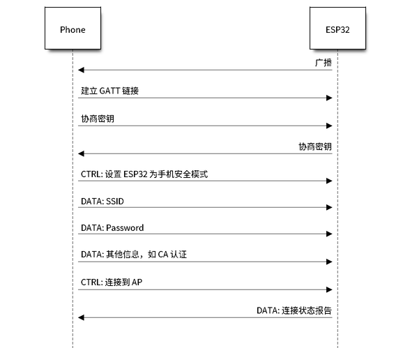 手机与 ESP32 进行密钥协商。协商过程可使用 DH/RSA/ECC 等加密算法。