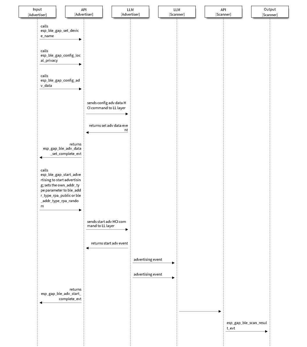 本文档为低功耗蓝牙 (Bluetooth LE) 入门教程其二,旨在对低功耗蓝牙设备发现过程进行简要介绍,包括广播与扫描相关的基本概念。随后,本教程会结合 NimBLE_Beacon 例程,基于 NimBLE 主机层协议栈,对低功耗蓝牙广播的代码实现进行介绍。