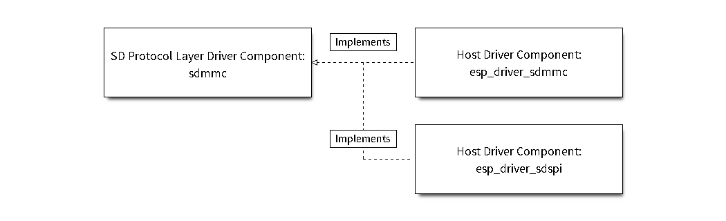 SD/SDIO/MMC 驱动支持 SD 存储器、SDIO 卡和 eMMC 芯片。这是一个协议层驱动 (sdmmc/include/sdmmc_cmd.h),可以与以下驱动配合使用: