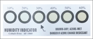 The humidity-indicator card reads > 10%, when reading at 23 ± 5℃;