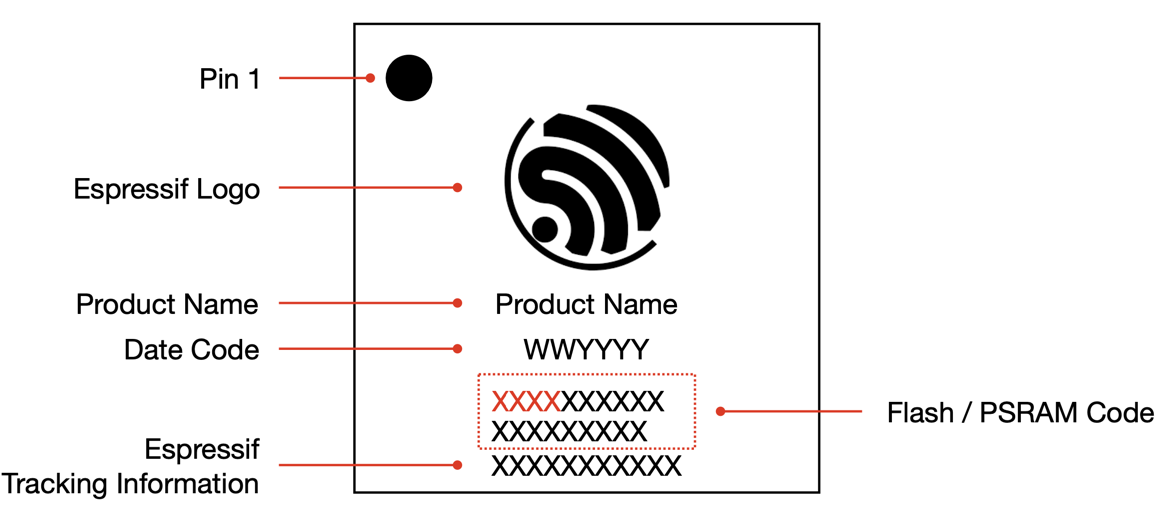 乐鑫芯片带有丝印,可显示芯片名称、flash 大小、工作温度等信息。
