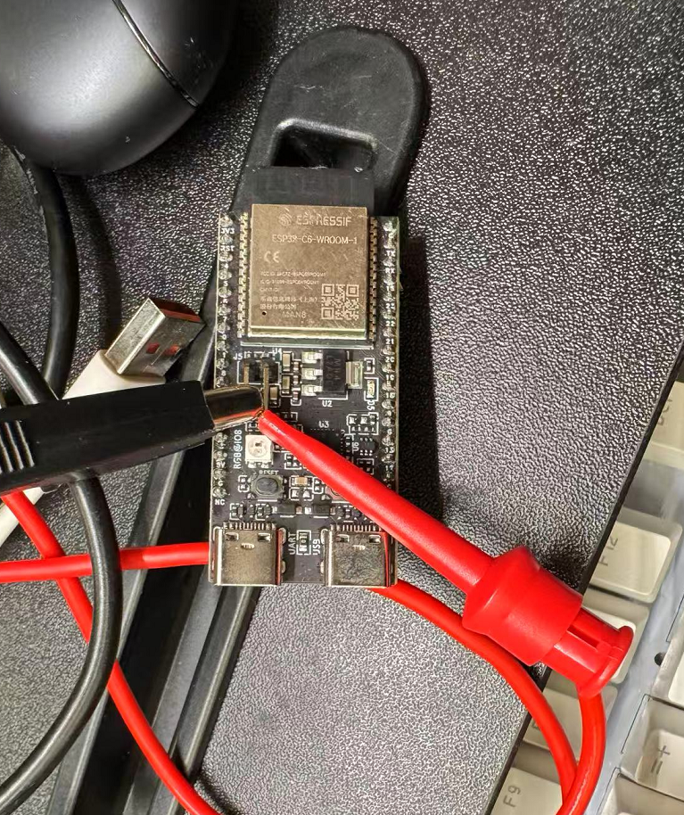 Step 3: The development board continues to use USB power supply, and the two ends of the ammeter can be connected to the drawn wire and the 3V3 pin on the development board to measure the current passing through the module.