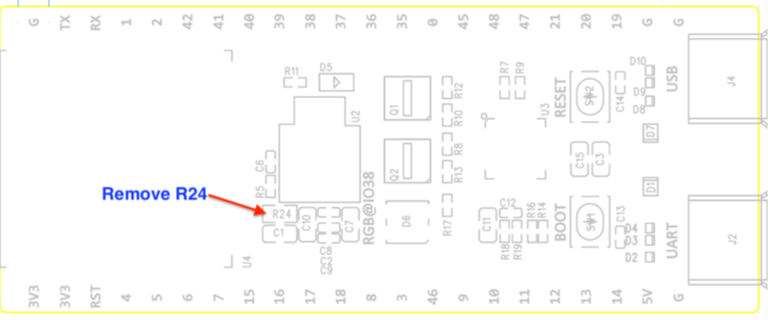 Step 1: Remove the R24 (0 ohm resistor) on the front.