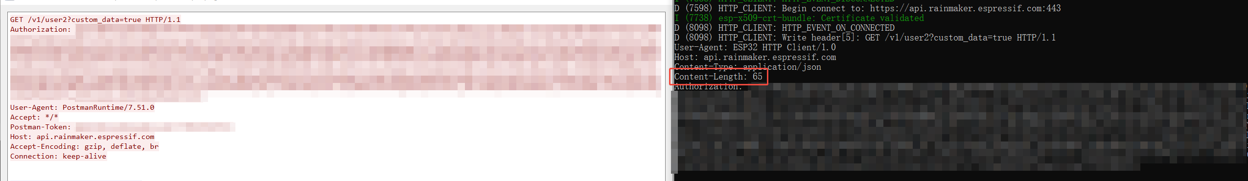 Obtain the request content sent to the server by the local test tool through Wireless Capture, and compare it with the request header in the device-side Debug Log. After comparison, it is found that there is Content-Length in the request header of the device side, but the request sent by the local test tool does not have this field.