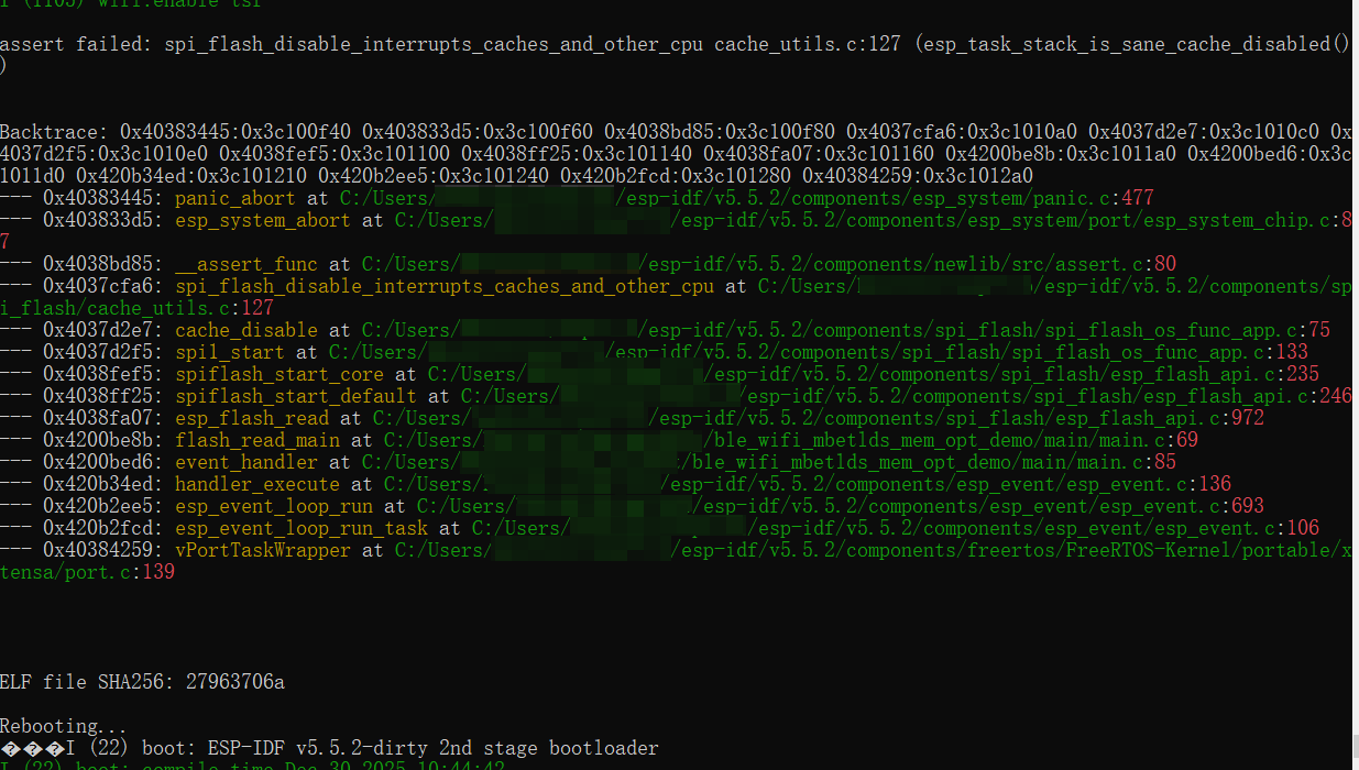 在 ESP-IDF v5.5 版本,我们对 IRAM 占用进行了深度优化,可以将大部分 IRAM 函数放置在 flash,尤其是在使能 CONFIG_SPI_FLASH_AUTO_SUSPEND 这个配置时。有关所有此类配置的详细列表,请参见 sdkconfig.flash_auto_suspend_iram_reduction。