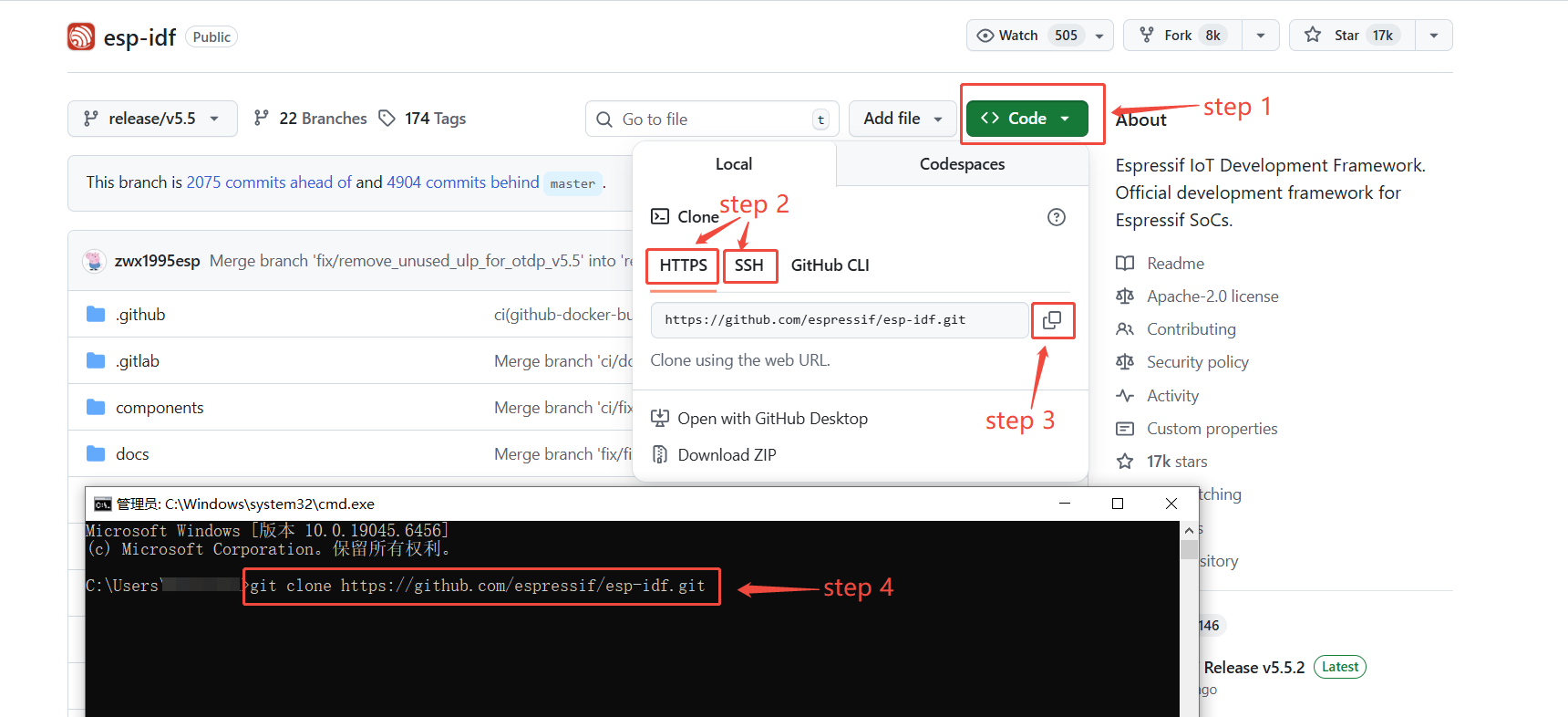 以 esp-idf 仓库 为例,具体步骤如下: