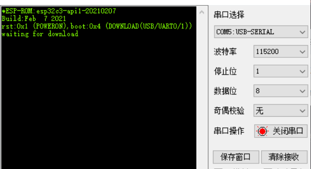 ESP-ROM:esp32c3-api1-20210207 Build:Feb 7 2021 rst:0x1 (POWERON),boot:0x4 (DOWNLOAD(USB/UART0/1)) waiting for download![]()