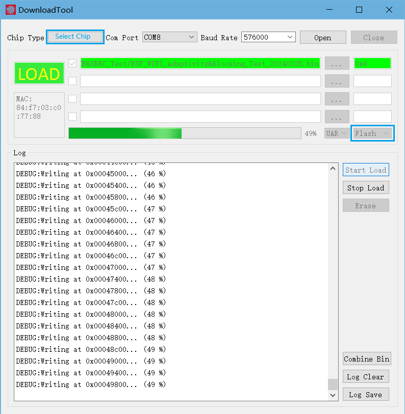 UART烧录至 0x0。