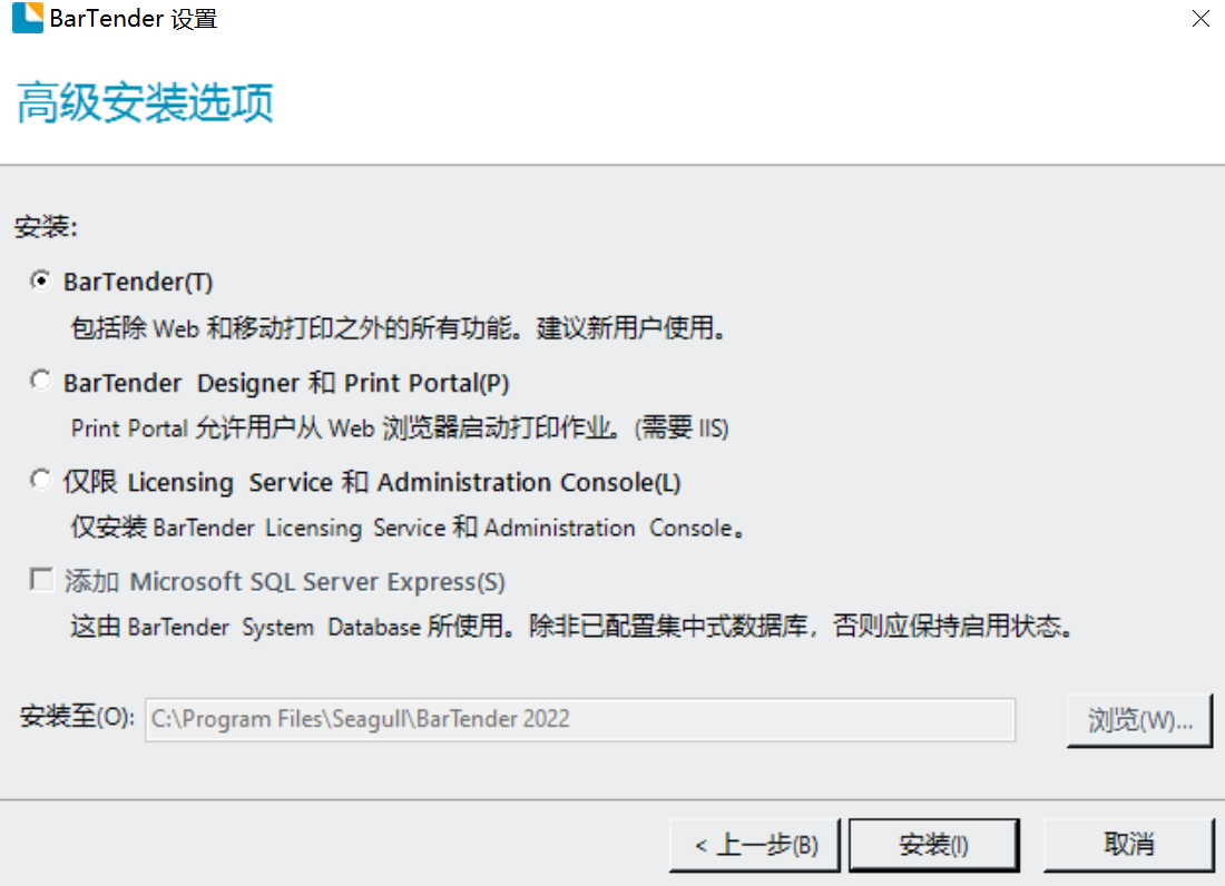 具体安装流程参考 附录二:BarTender (2022) 安装示例。