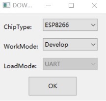 ChipType选择ESP32,WorkMode选择Develop,LoadMode选择UART,点击OK,如下图所示。