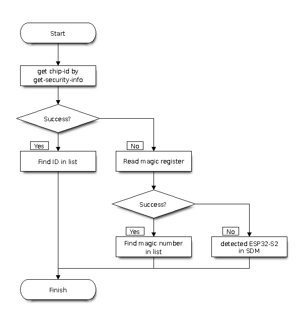The main exception is the ESP32-S2: although it supports the GET_SECURITY_INFO (0x14) command, the output lacks the chip-id. Therefore, esptool uses the magic register as a fallback for this chip as well. If reading the register also fails, it indicates the chip is in secure download mode.