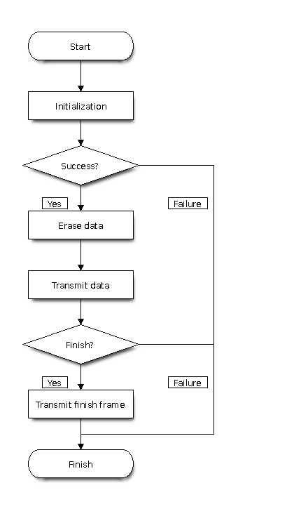 This flow chart is used to illustrate the download procedure (writing to flash), other commands have different flows.