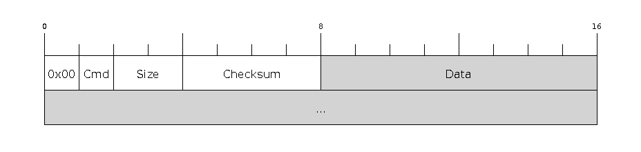 Each command is a SLIP packet initiated by the host and results in a response packet. Inside the packet, the packet consists of a header and a variable-length body. All multi-byte fields are little-endian.