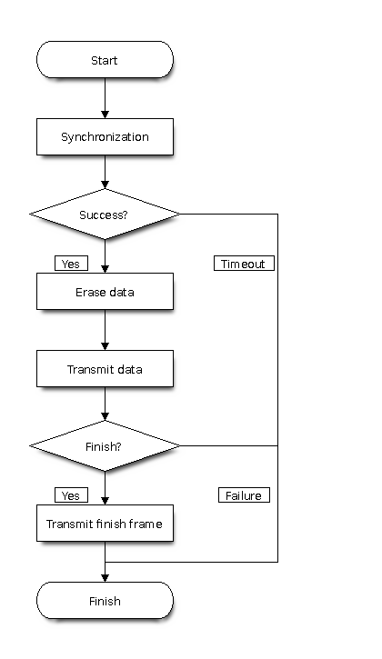 This flow chart is used to illustrate the download procedure (writing to flash), other commands have different flows.